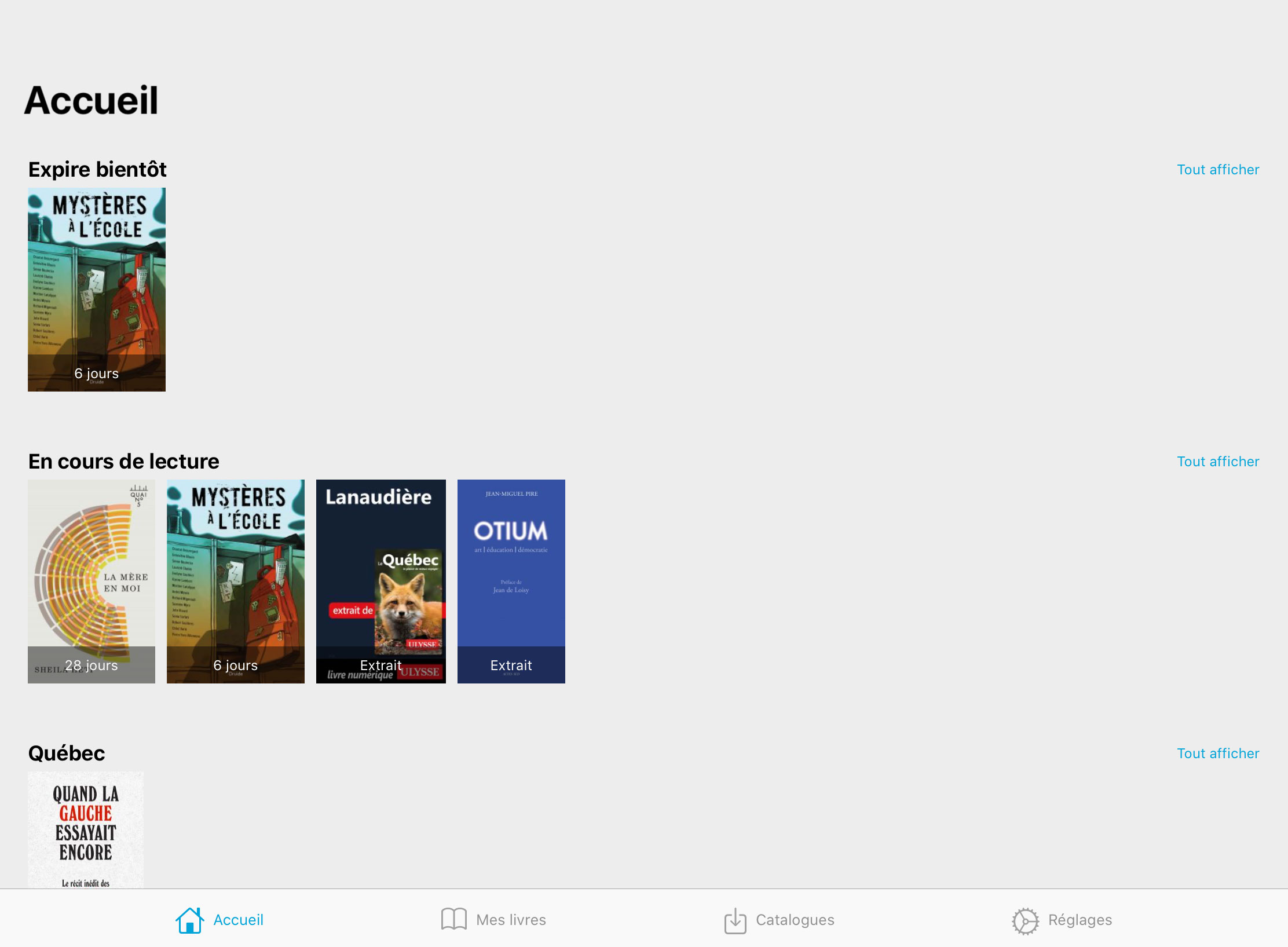 Vous accédez aux publications que vous avez empruntées en vous rendant dans la section Accueil ou Mes livres de l'application.